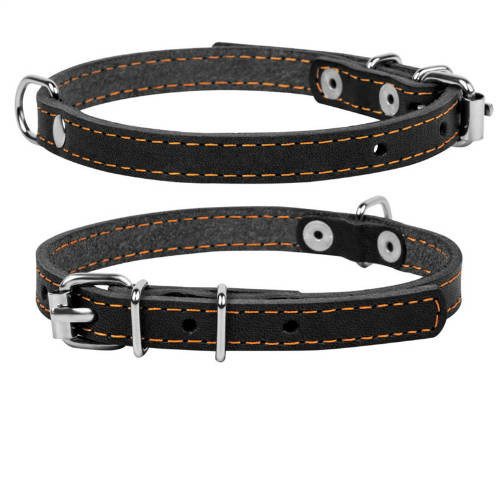 A nyakörv valódi bőrből készült, amely nemcsak elegáns megjelenést biztosít, hanem rendkívül tartós is. A bőr természetes rugalmassága és puhasága lehetővé teszi, hogy a nyakörv kényelmesen illeszkedjen a kutya nyakára, anélkül, hogy irritációt okozna. Az erős varrások és a strapabíró fém csat garantálják a hosszú élettartamot, így Ön nyugodtan sétáltathatja kedvencét, tudva, hogy biztonságban van.