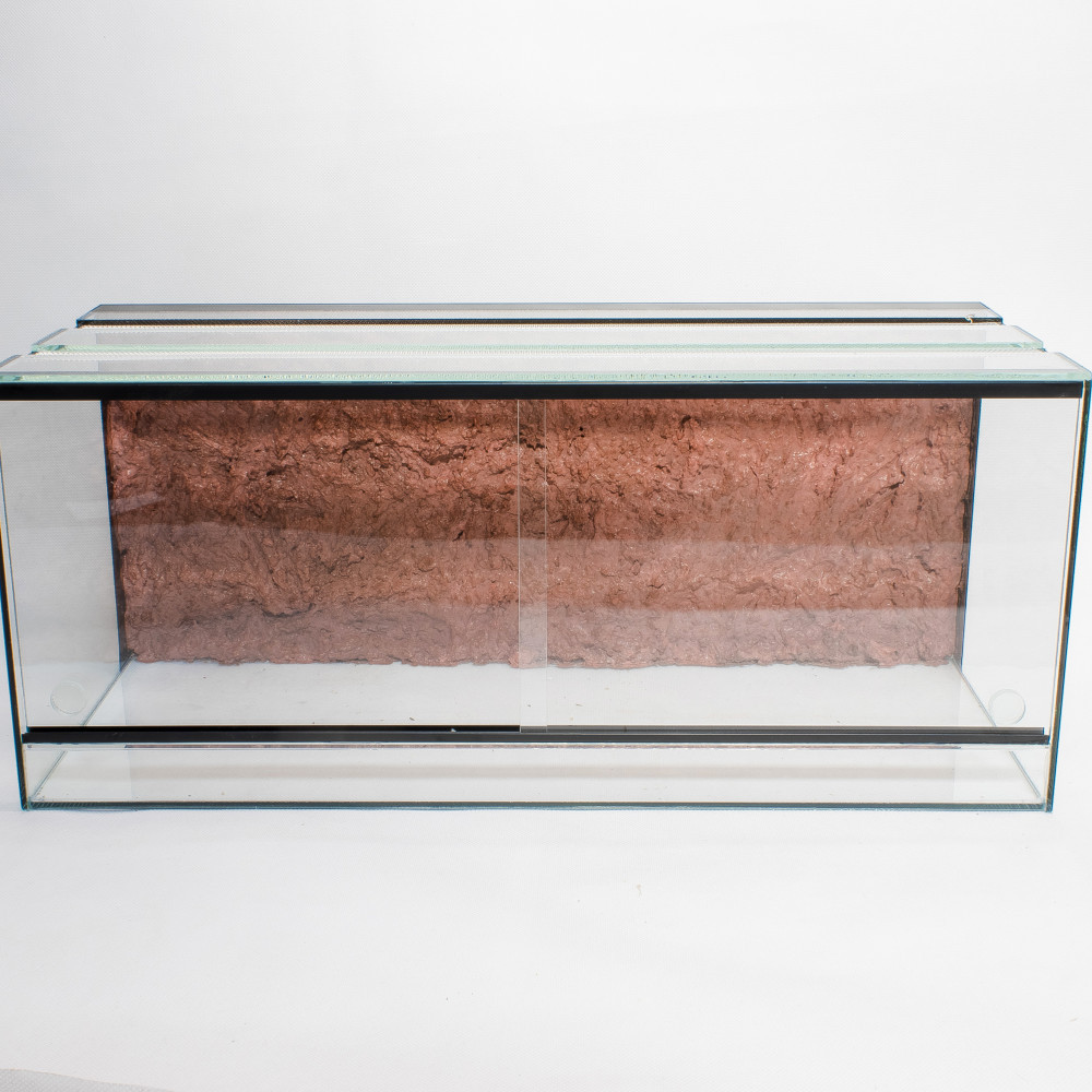 A terráriumaink minden részletre kiterjedő minőséget képviselnek, rozsdamentes acél szellőzőrácsokkal, hagyományos vagy rejtett szellőzéssel, valamint felső és alsó szellőzőkkel rendelkeznek. A dupla tolóajtók kényelmes hozzáférést biztosítanak, míg a géppel csiszolt élek és a precíz illesztések garantálják a biztonságot és az esztétikumot. Az igényes, kemény, rovarbiztos sziklaháttér nemcsak tartós, de megakadályozza, hogy az állatok belefúrják magukat, így tovább növelve a terrárium élettartamát.