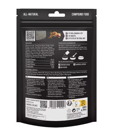 - Teljes értékű, kiegyensúlyozott táplálék: A StickyFoot Gold Banana-Fig táp összetevői gondosan válogatott fehérjékből, vitaminokból és ásványi anyagokból állnak, amelyek támogatják a hüllők egészséges növekedését, immunrendszerének erősítését és vitalitását.