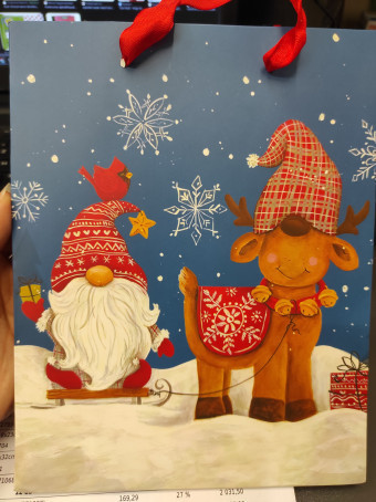 - Vidám ajándéktasak orrmanó és rénszarvas mintával