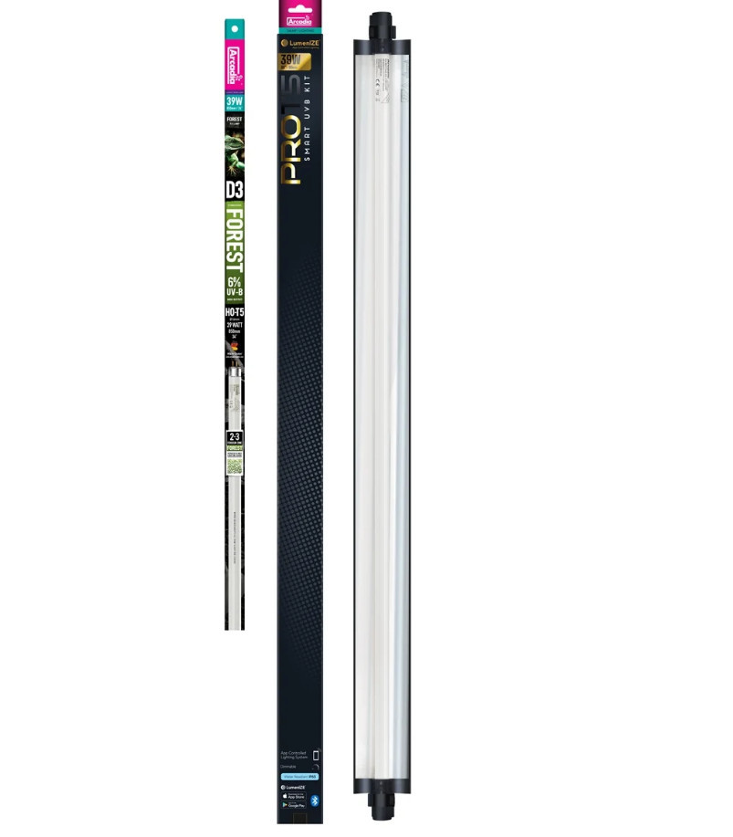 Ez a készlet az első, amely app-szabályozható dimmelési lehetőséget kínál: Bluetooth-on keresztül az ingyenes Arcadia Lumenize alkalmazáson keresztül természetes nappali ciklusok programozhatók (napfelkeltétől napnyugtáig), ami növeli az energiahatékonyságot (akár 30 % megtakarítás) és javítja a terrárium bioklí?máját. Az IP65 vízállósági osztály garantálja a magas élettartamot kültéri és magas páratartalmú környezetben .