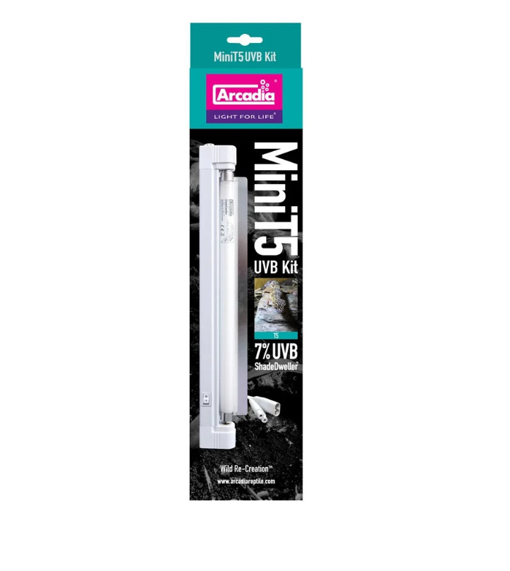 Az Arcadia T5 UVB Mini Kit ShadeDweller egy prémium minőségű, kompakt UVB fénycső és reflektor készlet, amely kifejezetten árnyékos vagy félárnyékos élőhelyeken tartott hüllők számára lett fejlesztve. A 7%-os UVB kibocsátás optimális fényviszonyokat biztosít olyan fajok számára, melyek természetes környezetükben sem közvetlen napsütésben élnek, de szükségük van a D3-vitamin előállításához elengedhetetlen UVB sugárzásra. A 8 wattos fénycső hosszú élettartamú, stabil fénykibocsátással járul hozzá a hüllők egészségéhez és jólétéhez.