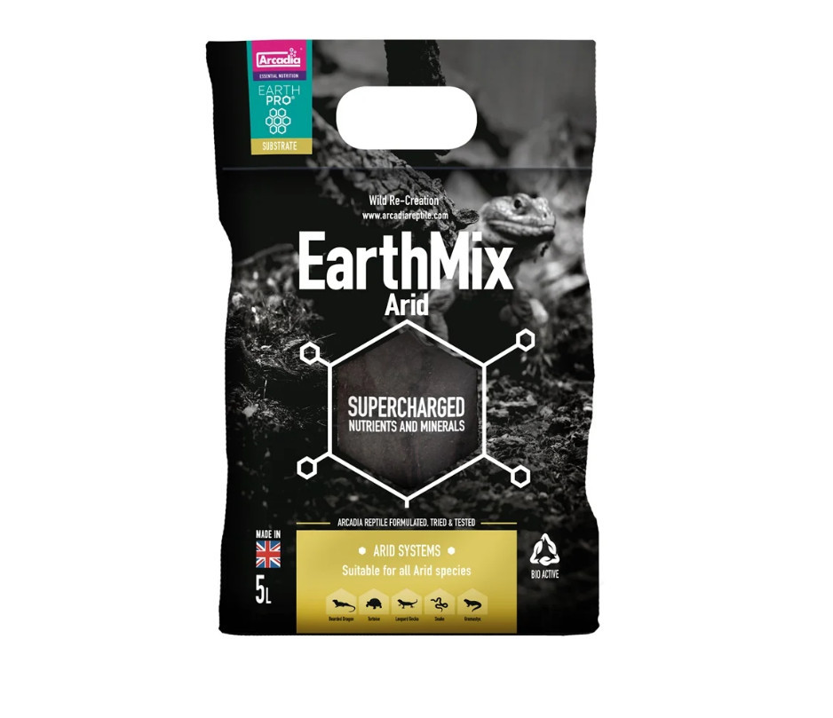 Az Arcadia EarthMix Arid egy természetes alapanyagokból összeállított, bioaktív terráriumi talajkeverék, amelyet kifejezetten sivatagi és száraz éghajlatot kedvelő hüllők számára fejlesztettek ki. A keverék vulkanikus lávaport is tartalmaz, amely kiváló vízelvezető képességet biztosít, emellett gazdag ásványi anyagokban, elősegítve az egészséges mikrobiológiai talajélet kialakulását.