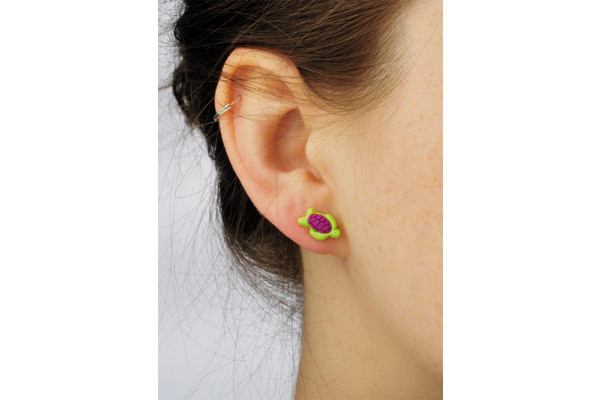 A BlueBug teknős formájú műanyag fülbevalója tökéletes választás mindazok számára, akik kedvelik az aranyos, figyelemfelkeltő és játékos ékszereket. Ez a könnyű, színes fülbevaló egy zöld héjú, rózsaszín páncélos teknőst ábrázol, amely nemcsak vidám megjelenést kölcsönöz viselőjének, de kedvességet is sugároz.