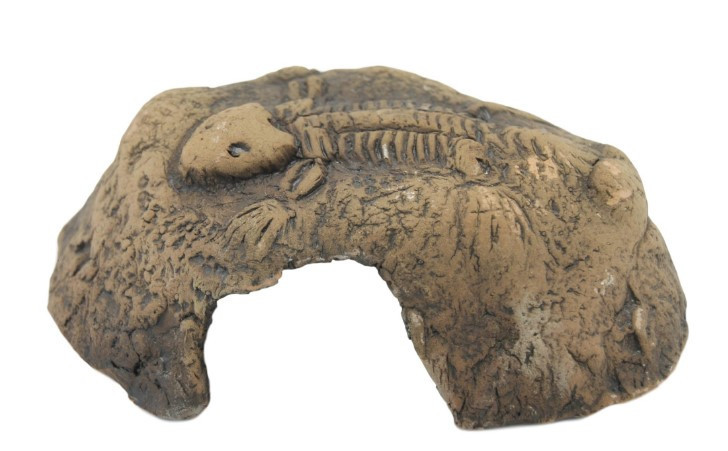 Terráriumi használat: Ez a termék kiválóan alkalmas gekkók, agámák, kígyók, illetve más hüllők és kétéltűek számára, akik szeretnek rejtőzködni, vagy egyszerűen csak egy természetes megjelenésű napozóhelyet keresnek. A fosszilis kőzet textúrája és színe tökéletesen utánozza a természetes környezetet, így hozzájárul a terrárium harmonikus megjelenéséhez és az állatok komfortérzetéhez.