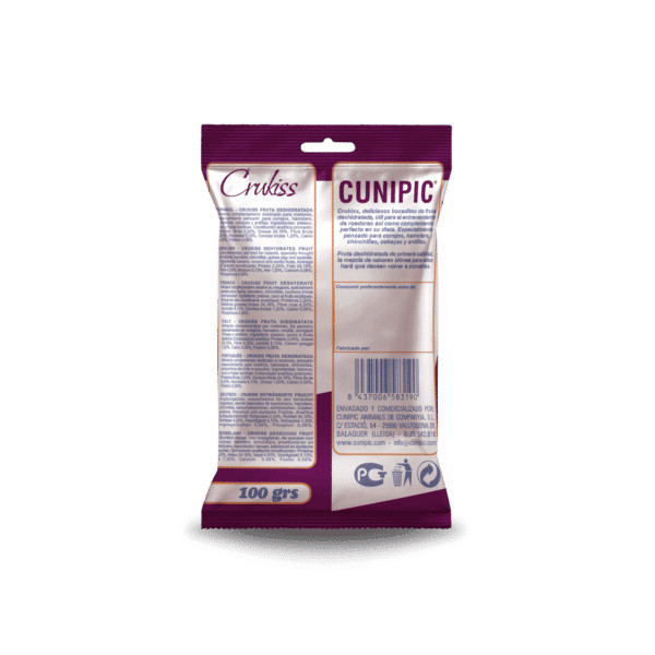 A Cunipic Crukiss Gyümölcsös Snack ideális minden kisállat tulajdonosának, akik szeretnék kedvencüket egészséges és ízletes jutalomfalattal kényeztetni. Tökéletes választás nyulak, tengerimalacok, csincsillák és más kisrágcsálók számára.