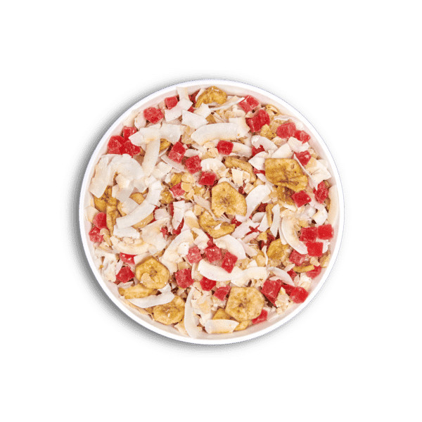 Természetes gyümölcsök: A snack válogatott gyümölcsökből készül, amelyek biztosítják a szükséges vitaminokat és antioxidánsokat, így hozzájárulva az egészséges étrendhez.