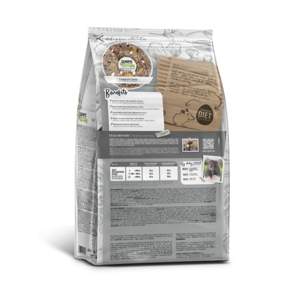 A Cunipic Prémium Eledel Patkányoknak egy kifejezetten patkányok számára kifejlesztett, teljes értékű táplálék, amely biztosítja kedvencének a szükséges tápanyagokat és vitaminokat. Ez a táp gazdag fehérjében, rostokban és ásványi anyagokban, amelyek elősegítik a patkányok megfelelő fejlődését, egészséges emésztését és energiaszintjének fenntartását. A gondosan válogatott természetes összetevők garantálják, hogy patkánya szívesen fogyassza ezt az eledelt nap mint nap.