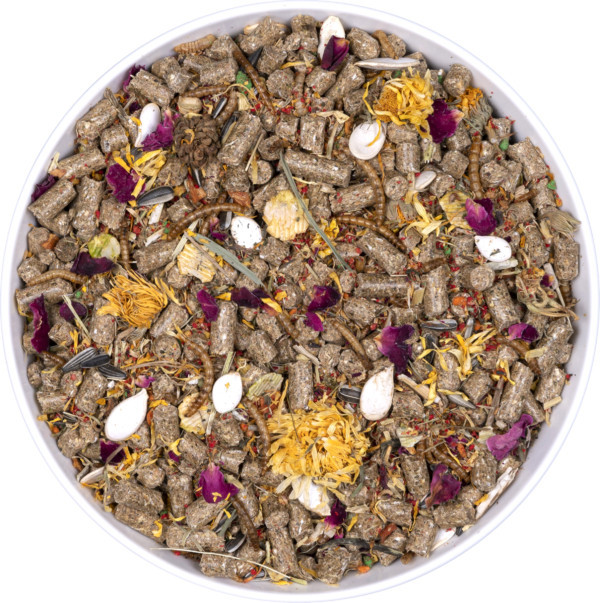 Természetes összetevők: A lucerna, búza, kukorica és szárított zöldségek természetes forrásokból származnak, biztosítva a patkányok számára a legjobb minőségű, ízletes és tápláló étrendet.