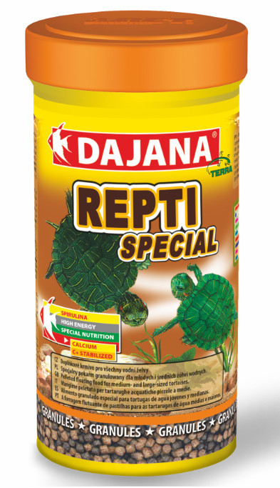 A Dajana Repti Special egy speciális formula, melyben kalcium, D3-vitamin és más fontos tápanyagok találhatók, amelyek elengedhetetlenek a teknősök megfelelő fejlődéséhez és egészségéhez. A granulátum formája könnyen adagolható és keverhető a teknősök szokásos táplálékával.