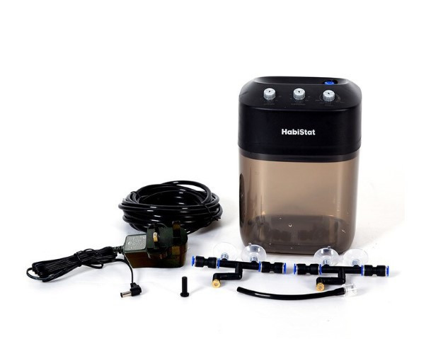 A HabiStat Rainmaker egy megbízható és könnyen telepíthető esőztető rendszer, amely automatikusan biztosítja a terrárium ideális páratartalmát. Kifejezetten trópusi hüllők és kétéltűek élőhelyének természetes körülményeinek megteremtésére fejlesztették ki, ezzel támogatva az állatok egészségét és jólétét. A rendszer csendes működésű, időzítővel szabályozható, így éjjel-nappal fenntartja a megfelelő mikroklímát, ami létfontosságú a párás, természetes élőhelyek utánzásához.
