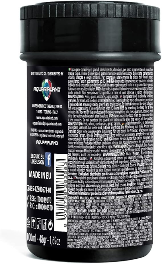 A Haquoss Basegran egy teljes értékű, granulált haltáp, amelyet kifejezetten édesvízi és tengeri akváriumi halak igényeinek megfelelően fejlesztettek ki. Kiegyensúlyozott összetételének köszönhetően biztosítja a halak mindennapi tápanyagszükségletét, elősegíti egészséges növekedésüket, élénk színkialakulásukat, valamint hozzájárul az immunrendszerük támogatásához.