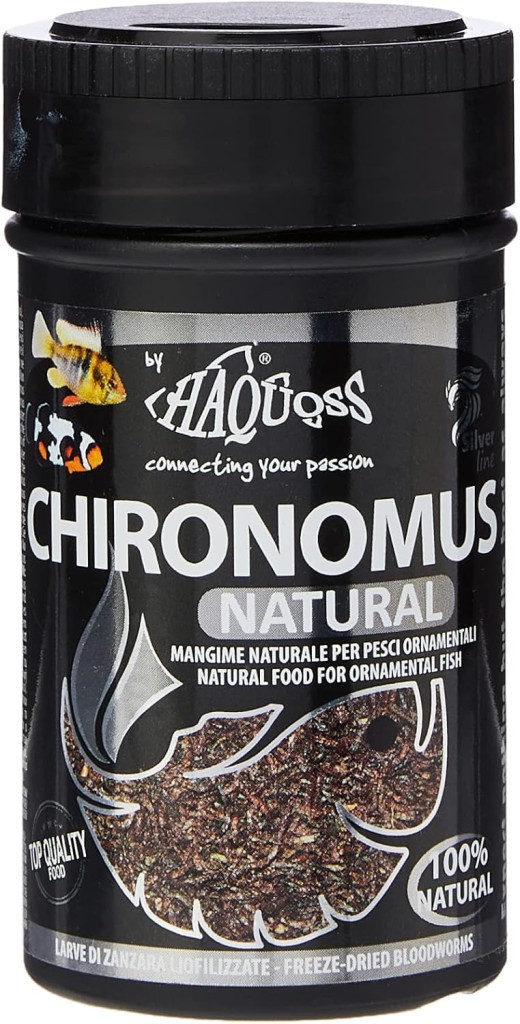 A Haquoss CHIRONOMUS egy prémium minőségű, fagyasztva szárított (liofilizált) vörös szúnyoglárva alapú haltáp, amely kifejezetten édesvízi és tengeri akváriumi halak táplálására készült. Ez a természetes alapú táplálék magas fehérjetartalommal és természetes pigmentekkel rendelkezik, így támogatja a halak egészséges növekedését, immunrendszerének erősítését, valamint segít megőrizni és élénkíteni a színek intenzitását.