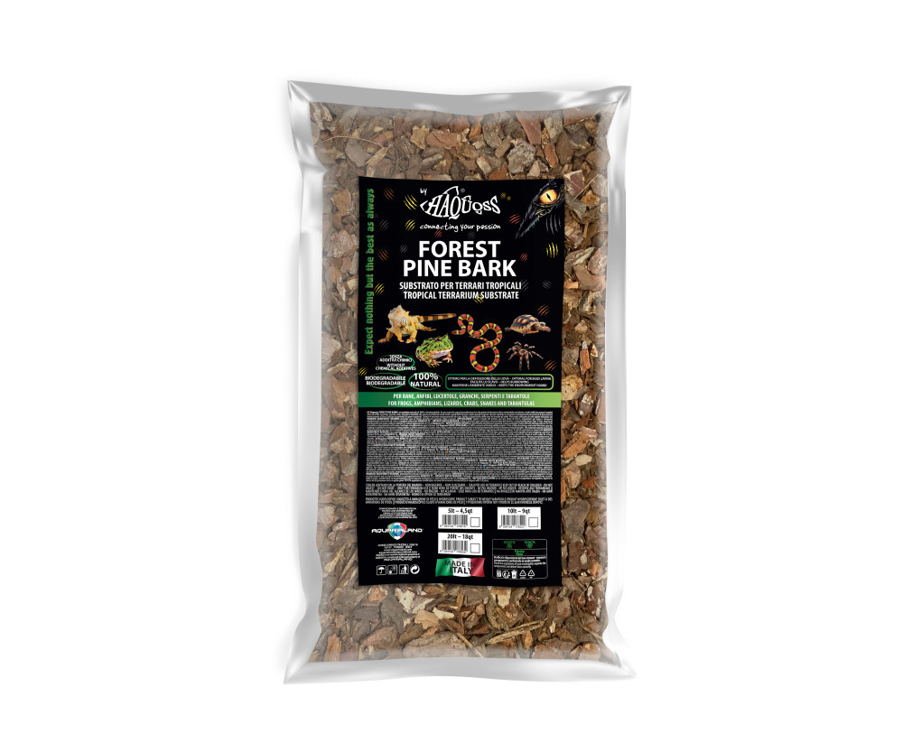A Haquoss FOREST PINE BARK elsősorban párás terráriumok aljzataként szolgál, különösen alkalmas hüllők és kétéltűek, például gekkók, békák, pitonok és tarajos sülök tartásához. Használható önmagában vagy más aljzatanyagokkal, például moha vagy tőzeggel keverve, az adott terráriumi faj igényei szerint.