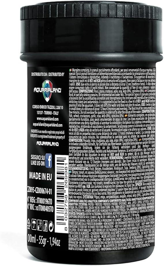 Széleskörű felhasználhatóság: A Haquoss MARINE GRAN GOURMET mindenféle tengeri halfaj számára alkalmas, beleértve a bohóchalakat, törpesügéreket, tangokat és más korallos tengeri akváriumok lakóit is. Ideális választás vegyes tengeri akváriumokban, ahol különböző táplálkozási igényű fajok élnek együtt.