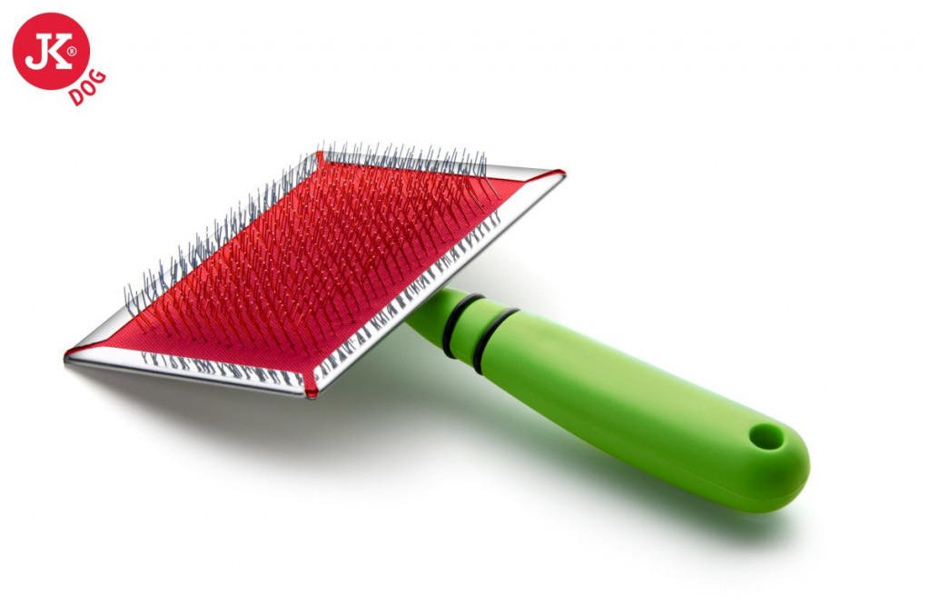 A JK Animals tüskés kefe ideális választás közepes és hosszú szőrű kutyák és macskák számára. A kefe nagy méretű, rugalmas tüskéi mélyen behatolnak a bundába, így nemcsak a felszíni szennyeződéseket távolítják el, hanem a kezdődő csomókat és elhalt szőrszálakat is.