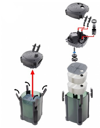 Többszintű szűrőrendszer – A különböző szűrőközegek hatékonyan eltávolítják a lebegő szennyeződéseket, méreganyagokat és az algák számára kedvező tápanyagokat.
