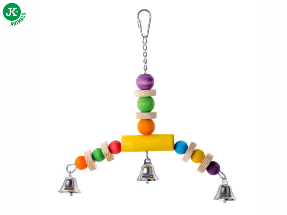 Az JK Libikóka kiváló minőségű anyagokból készült, amelyek biztosítják a tartósságot és az ellenállóságot a napi használat során. A három különböző csengettyű izgalmas és változatos hangokat kínál, amelyek stimulálják a madarak hallását és kíváncsiságát, miközben fejlesztik a mozgáskoordinációt és az ügyességet.