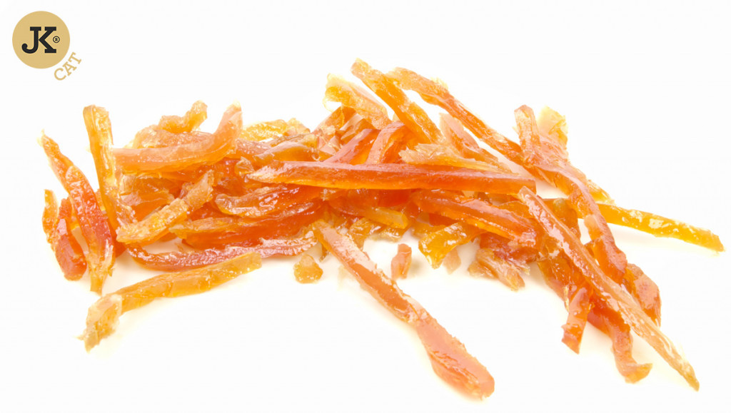 Megjegyzés: Mint minden jutalomfalat esetében, a JK Snack csirkés csíkok is mértékkel adhatók, hogy elkerüljük a túlsúly kialakulását. Konzultáljon állatorvosával a megfelelő napi adagolásról és a macska étrendjének egyensúlyáról.