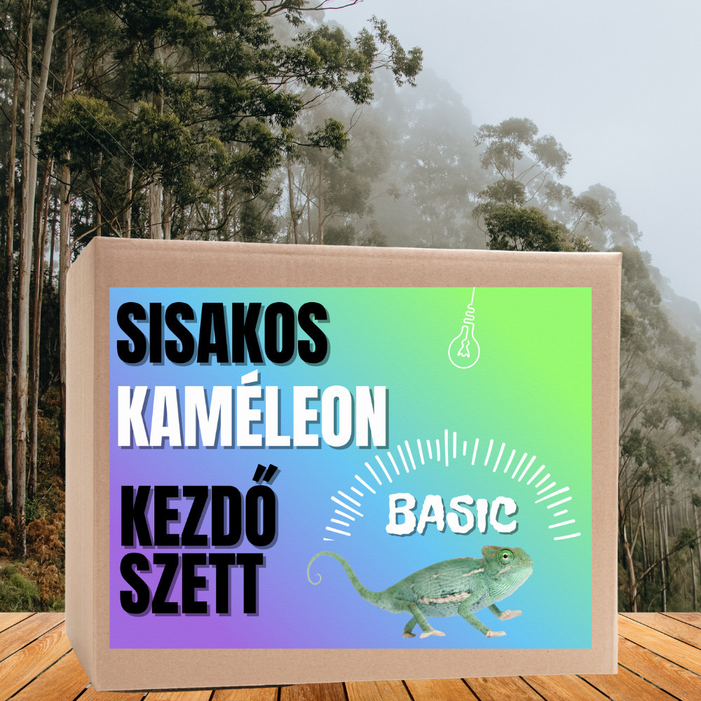 A BASIC csomag a fiatal sisakos kaméleon számára készült alapfelszerelés, amely tartalmaz minden szükséges eszközt a stabil induláshoz: megfelelő méretű és kialakítású terráriumot, növényzettel és mászáshoz szükséges dekorációkkal, vitaminokat, élő eleséget, melegítést, UVB-t és permetezőt.