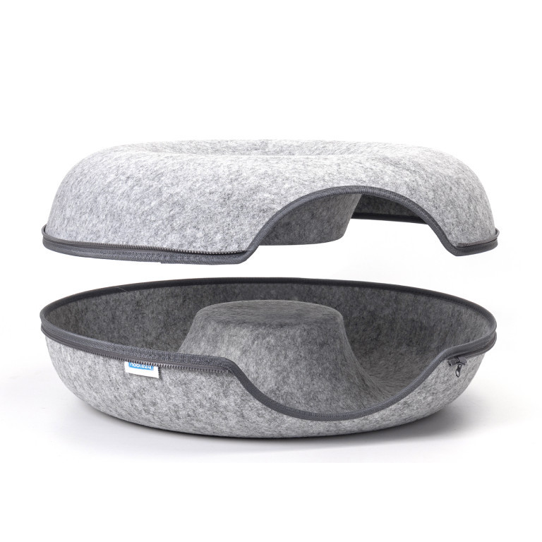 A ház anyaga kiváló minőségű, formatartó ipari filc, amely ellenáll a karmolásnak és nem vonzza túlzottan a szőrt. A két félből álló szerkezetet egy erős cipzár tartja össze, így a ház pillanatok alatt szétválasztható. Szétszedve két különálló, egymásba rakható fekhelyet kapunk, ami megkönnyíti a belső rész tisztítását vagy a helytakarékos tárolást is.