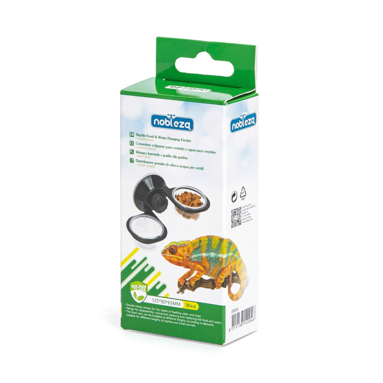 A Nobleza hüllő etető/itató multifunkcionális kialakításának köszönhetően ideális mind etetésre, mind itatásra. Használhatod különféle táplálékok, például rovarok, zöldségek, gyümölcsök vagy akár tápok számára, illetve friss víz biztosítására kedvenceidnek. Ez a sokoldalúság megkönnyíti a mindennapi gondozást, hiszen nem kell külön itatót és etetőt beszerezned – mindkét funkciót egyetlen praktikus eszközzel biztosíthatod.