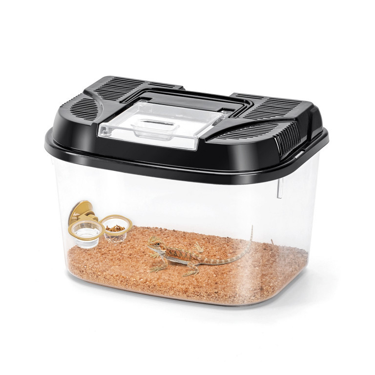 Kompakt és praktikus méret: Ideális kisebb és közepes méretű hüllők számára, könnyű hozzáférést biztosít az ételhez és vízhez.