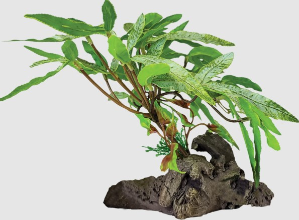 A növény gazdagon kidolgozott háromlevelű dizájnja a természet szépségét idézi, miközben gondosan illeszkedik a terráriumi élőhelyekhez. A levelek természetes színe és textúrája harmonikus összhangot teremt az élő környezetben.