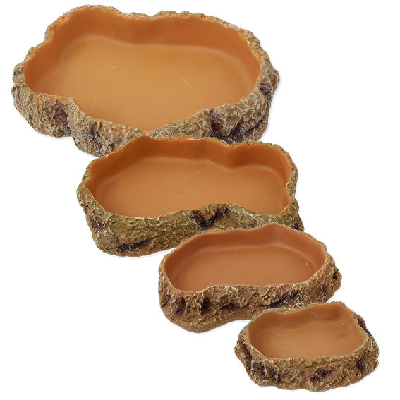 Valósághű megjelenésű etető- vagy itatótál, amely sivatagi és trópusi terráriumokba egyaránt illik. A sima belső felülete megakadályozza a szennyeződések lerakódását és megkönnyíti a tisztítást. Élelmiszeriparban való felhasználásra engedélyezett biztonságos anyagból készült nehéz tál, melynél a nagyobb súly biztosítja a stabilitást és csökkenti a felborulás veszélyét.
