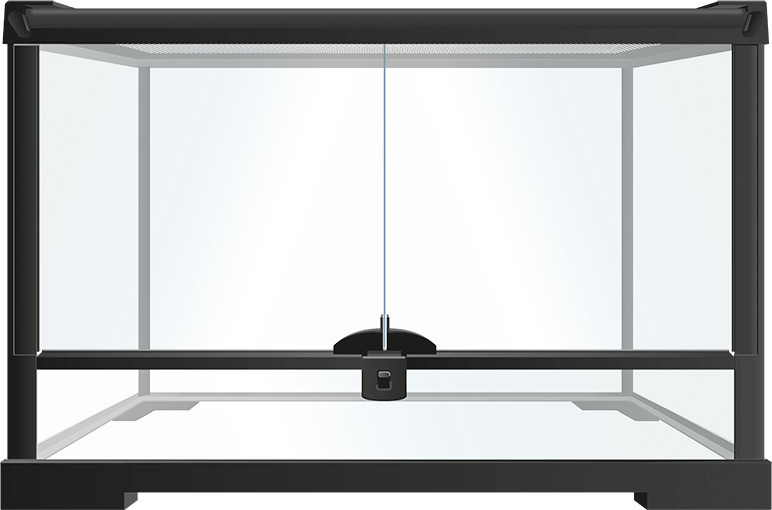 - Elülső ajtó: Könnyedén kezelhető, biztonsági zárral ellátott ajtó, melyen keresztül könnyedén hozzáférhetünk a terrárium belsejéhez.