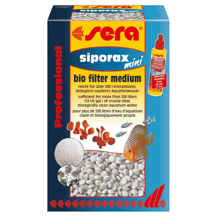 A Sera Siporax Mini Professional a világszerte elismert Siporax technológia kompakt változata. Annak ellenére, hogy a gyűrűk mérete kisebb, a szűrési hatékonyságuk kiemelkedő: 1 liter Siporax Mini annyi hasznos baktériumnak biztosít helyet, mint 34 liter kerámia szűrőgyűrű. Ez a nagy teljesítményű szűrőközeg szinterezett üvegből készül, amelynek speciális, nyitott pórusú szerkezete lehetővé teszi a víz tökéletes átáramlását.