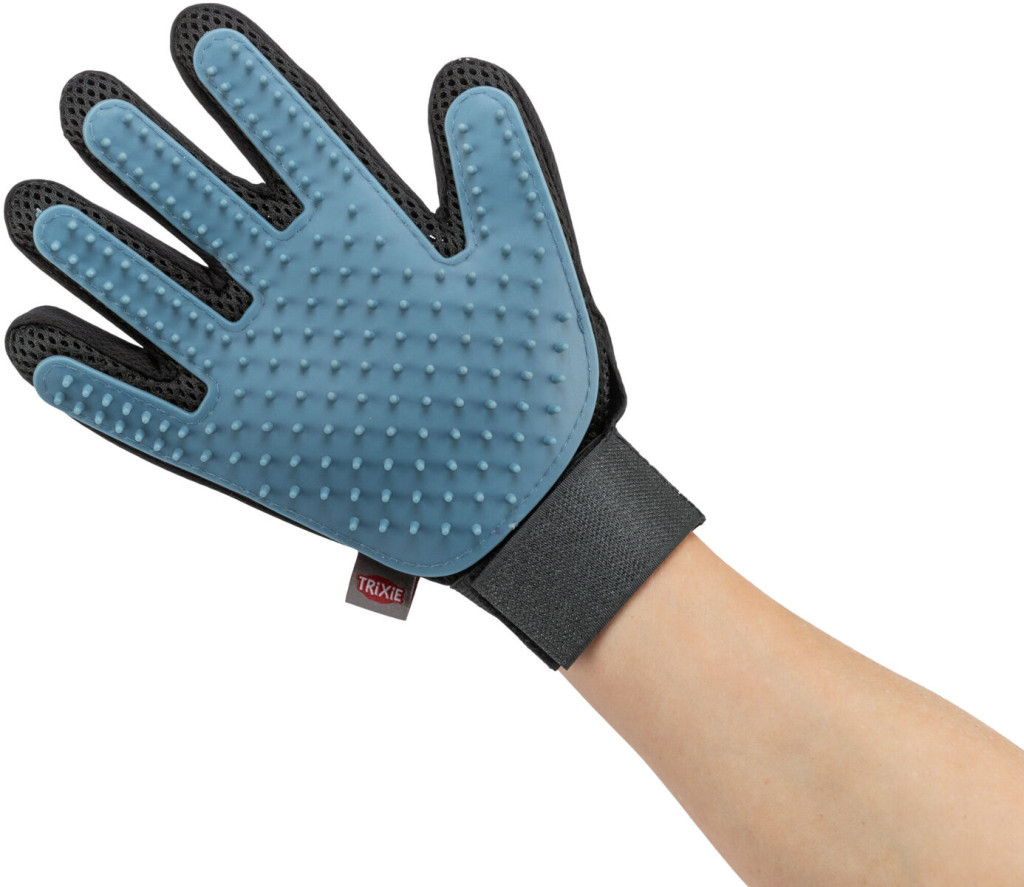 A tenyérrészen található sűrű gumisörték mágnesként gyűjtik össze a kilazult aljszőrzetet és a port. A szőrápolás mellett a kesztyű serkenti a bőr vérkeringését, ami hozzájárul az egészségesebb és fényesebb szőrzet kialakulásához. A hálós textil anyag biztosítja a kéz szellőzését használat közben, a csuklónál található tépőzár pedig megakadályozza a kesztyű lecsúszását.