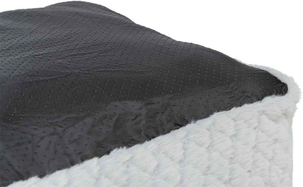 A fekvőhely belseje finom tapintású plüssel borított, míg a külső rész strapabíróbb szövetből készült, így egyszerre esztétikus és tartós. A vidám, mégis visszafogott szürke-rózsaszín dizájn modern dísze lehet a nappalinak vagy a hálószobának. A stabil kialakítás biztosítja, hogy az ágy intenzív használat mellett is megőrizze formáját.