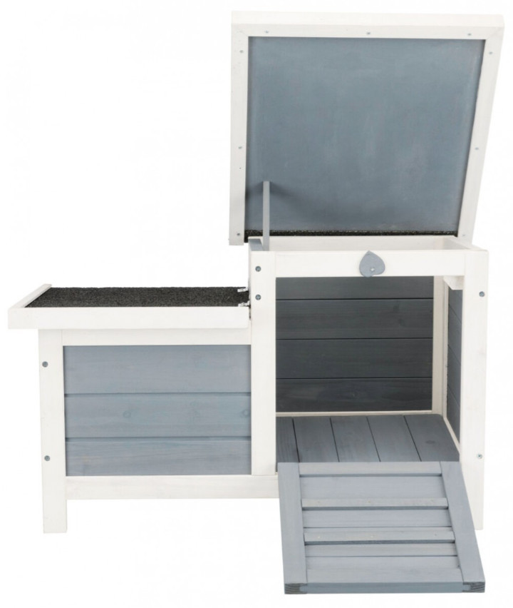 A kiváló minőségű anyagokból készült Trixie faház nem csak esztétikus, de rendkívül tartós is. Az ellenálló fából és fehér tetőből álló dizájn magában foglalja a modern stílust és a klasszikus kényelmet egyaránt. Az elegáns megjelenés mellett a 70x43x45 cm-es méret praktikus és könnyen illeszkedik bármely szobába vagy kifutóba.