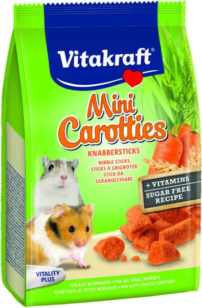 Kényeztesd kisállatodat a legfinomabb csemegével! Válaszd a Vitakraft Mini Carotties-t, hogy tápláló és ízletes falatokkal örvendeztesd meg kedvencedet, és nézd, ahogy boldogan falatozik!