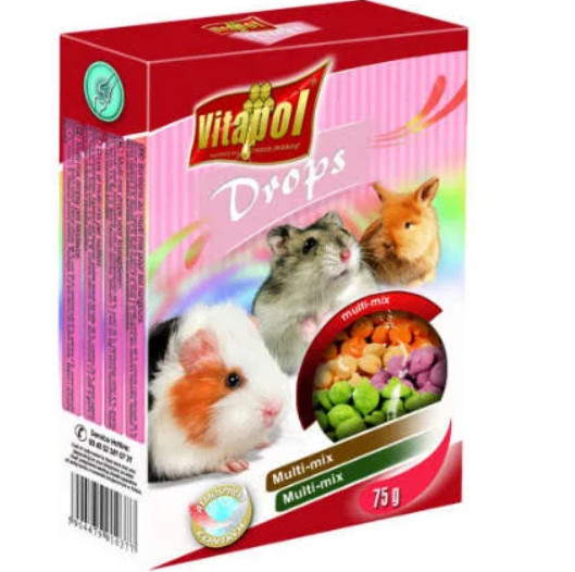 Fedezd fel rágcsálóid új kedvencét - a Vitapol Drops multi-mix jutalomfalatot! Ez a csodálatosan ízesített keverék garantáltan lenyűgözi és elvarázsolja kedvenceidet, és élménnyé tesz minden egyes falatot.