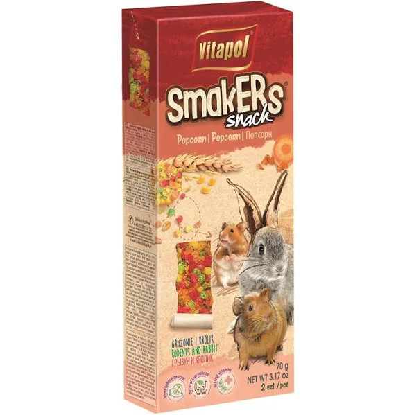 A Vitapol Smakers rúd garantáltan elbűvöli rágcsálóidat és nyulaidat, miközben kényezteti őket az ínycsiklandó ízzel és tápláló összetevőkkel. Kényeztesd kis kedvenceidet a legfinomabb és legtáplálóbb rágcsálnivalóval, és figyeld, hogyan élvezik minden egyes harapását! Ne habozz, tedd kosaradba a Vitapol Smakers rúdot popcorn ízben, és lássd, milyen boldogságot hozol a kisállataid életébe!
